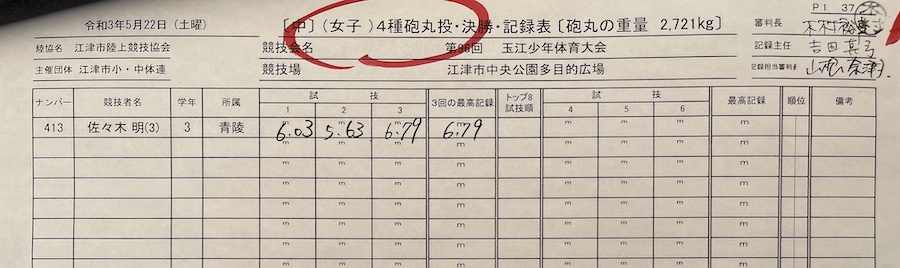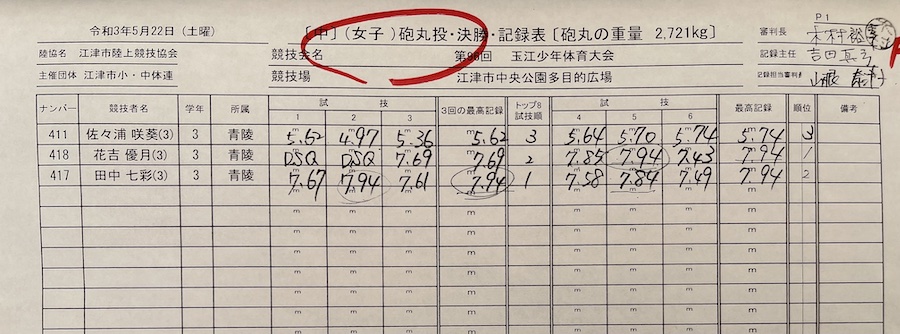 F6(中全女)砲丸投 F7(中全女)四種砲丸投